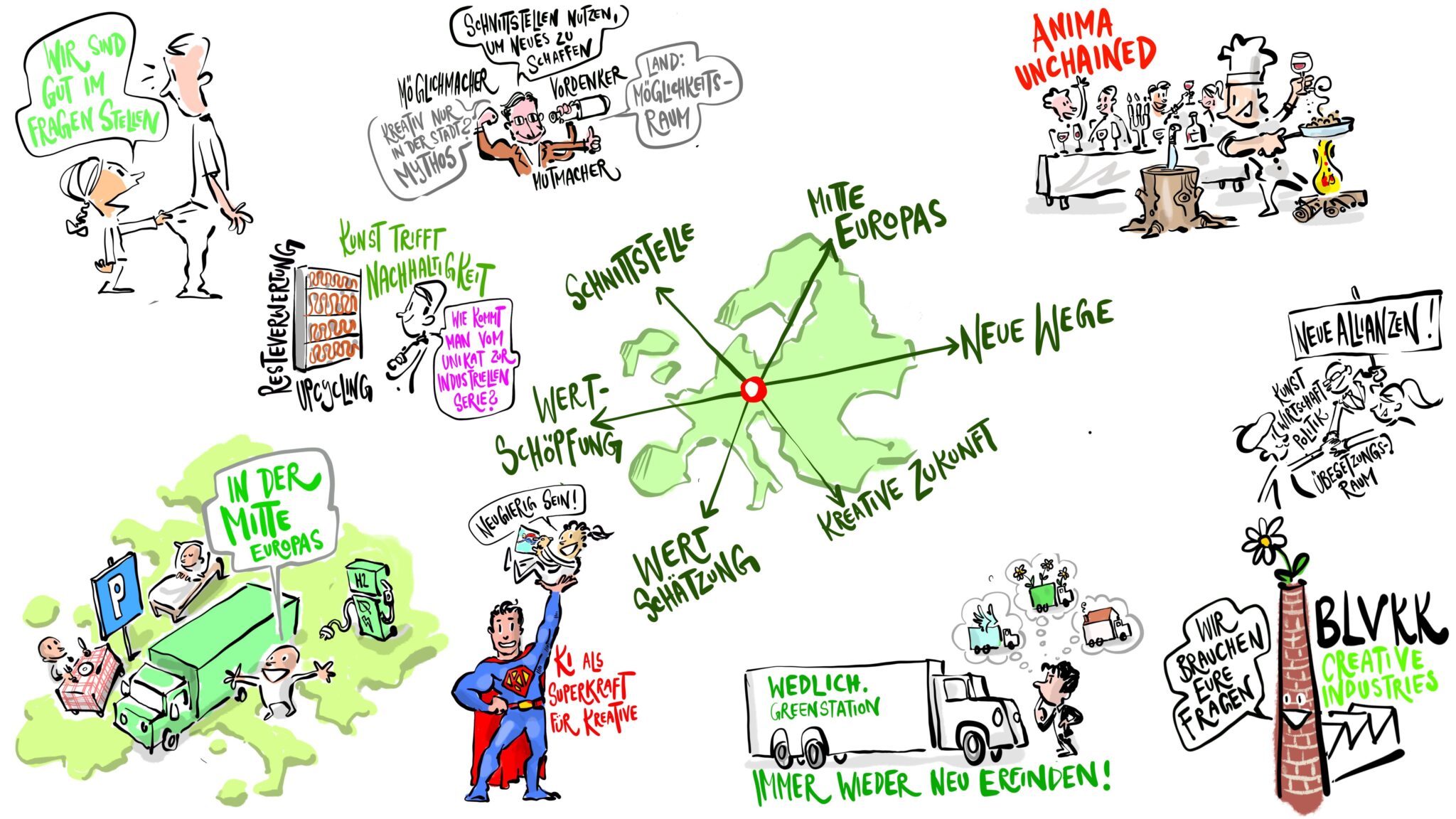 Die Dokumentation der Veranstaltung Cross Innovation Two vom November 2025 – live mit gezeichnet von Mathias Suess, unserem außerordentlichen, phantastischen Graphic Recorder…