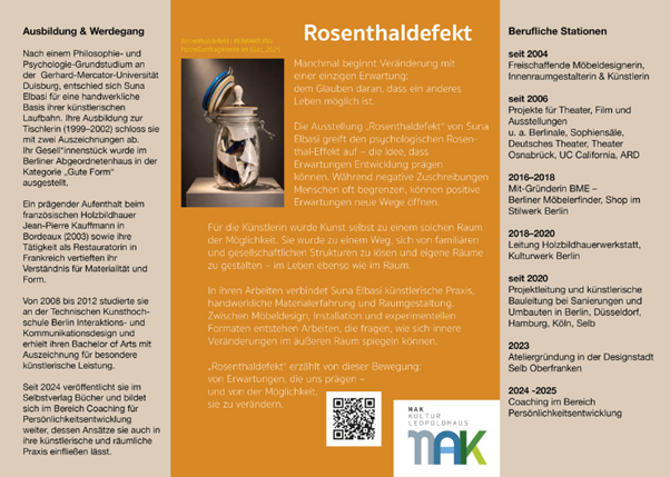„Rosenthaldefekt“ versteht den vermeintlichen Defekt nicht als Fehler, sondern als Moment des Umdenkens: als Punkt, an dem Erwartungen verändert werden können und damit auch die Zukunft neu gestaltet werden kann.